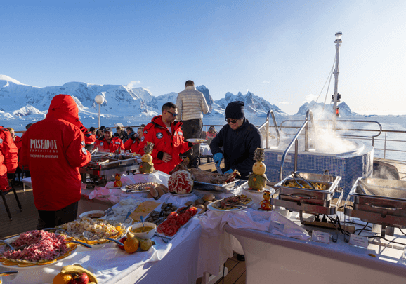 Our Antarctic adventures will be even more memorable as Christmas Day falls during our days of exploration! We will celebrate it with special meals and festivities that honor the diverse traditions of our multinational passengers. Santa Claus will make an appearance, and you'll have the opportunity to take your photo with him in the snow. We encourage you to dress in festive attire for an evening filled with holiday music, singing, and dancing. This will be a Christmas in Antarctica you'll always remember!
