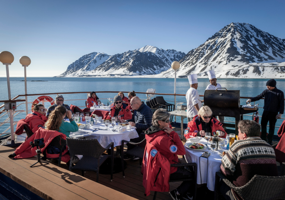 Join hands-on workshops in the lounge — practice your photography techniques, and attend an “Expedition Readiness” briefing to prepare for our shore landings. As the low Arctic sun drapes the horizon, share stories over drinks and toast to tomorrow’s first glimpse of Svalbard’s ice-swept shores.