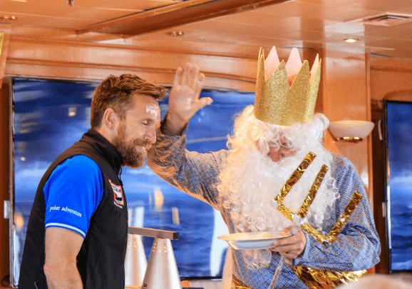 A magical day at sea awaits! Join engaging lectures, photography workshops, or simply relax on deck as seabirds glide alongside and whales break the horizon. The highlight comes as we cross the legendary Arctic Circle at 66°30′ N! Celebrate with a lively party, and don’t be surprised if Poseidon — the God of the Sea himself — appears to welcome us into the North.