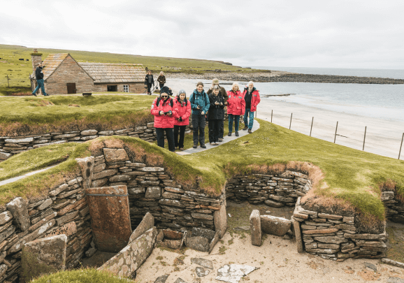Our included tour takes you west across Orkney’s rolling landscape into the UNESCO World Heritage “Heart of Neolithic Orkney.” Pass the Standing Stones of Stenness and visit the Ring of Brodgar, a vast ceremonial stone circle over 5,000 years old. Explore Skara Brae, a prehistoric village revealed from the sand only 150 years ago.