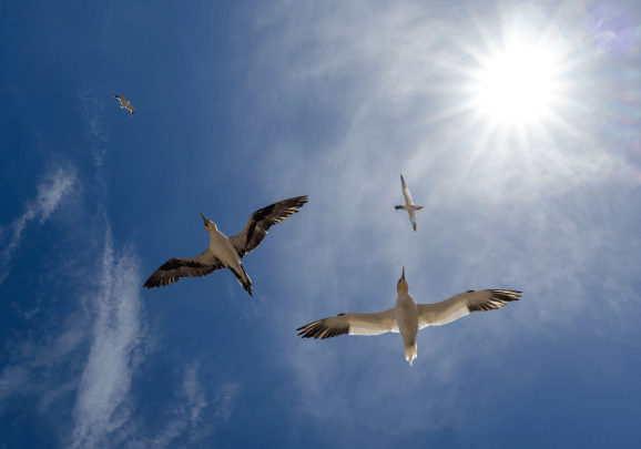 Just across the water rises Bass Rock—home to the world’s largest colony of northern gannets. Over 150,000 birds fill the cliffs and skies in one of nature’s greatest spectacles.