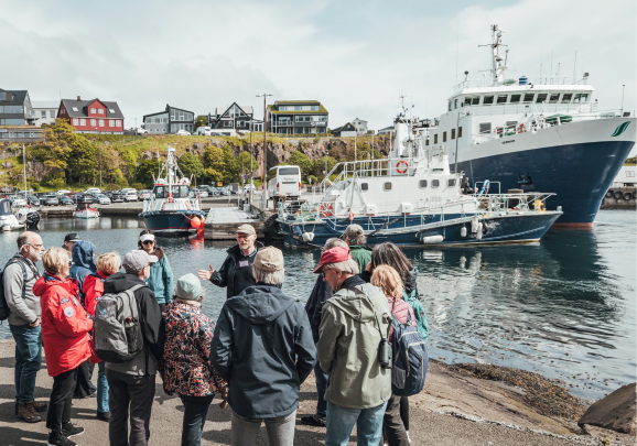 In Tórshavn, the capital, Viking heritage meets modern charm. Visit the National Museum, taste traditional wind-dried mutton, explore ancient wooden houses and cathedral ruins, then enjoy free time to capture the harbor’s beauty before we sail north.