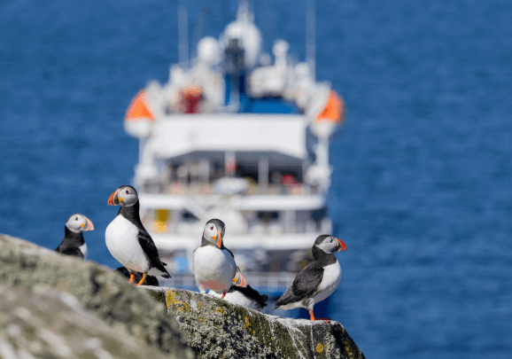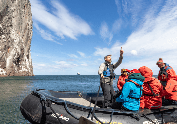 This isolated outpost is home only to a small weather station crew. For us, it’s a rare chance to capture dramatic volcanic landscapes and thriving birdlife — an absolute gem for photographers. In the afternoon, we sail on toward our next Arctic adventure.